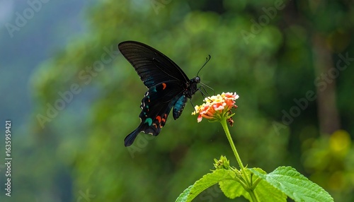 © Rejeki, Fototapeta premium Black butterfly on orange flower