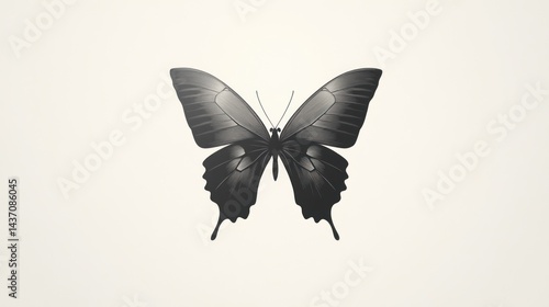 Fototapeta premium Black butterfly, wings spread, white background, nature illustration, design element