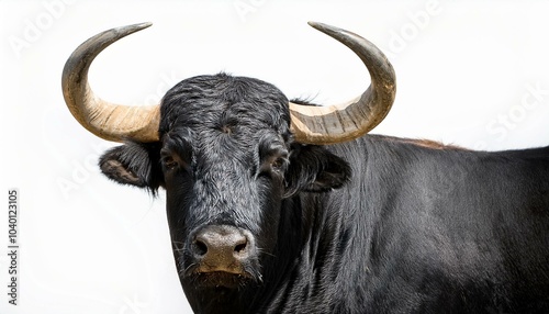 Naklejka premium black camargue bull face portrait on white background