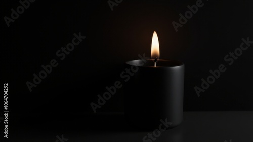 Fototapeta premium Black candle holder centerpiece for tables, casting a warm glow perfect for tranquil and calming interiors