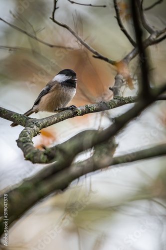 © Tim Malek, Obraz premium black-capped chickadee on perched on branch