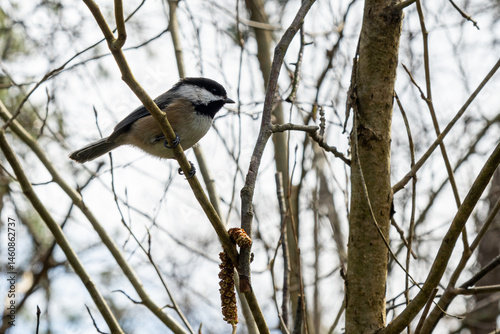 Fototapeta premium Black Capped Chickadee on tree branch in the park