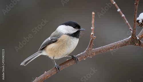 © ลลิดา ไชยศรีษะ, Obraz premium Black-capped Chickadee on Winter Branch