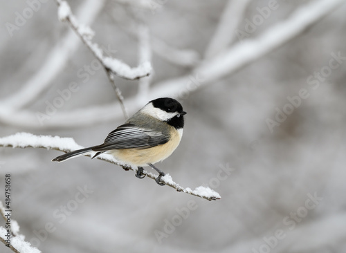 © FotoRequest, Fototapeta premium Black-Capped Chickadee Perched on a Snowy Twig in Winter
