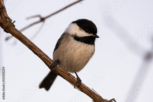 Obraz premium Black-capped chickadee perched on a tree branch