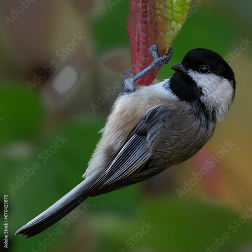 © Wirestock, Obraz premium Black-capped chickadee (Poecile atricapillus) perched on a thin twig