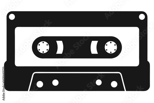 © MdHabibur, Obraz premium Black cassette tape icon on white background audio