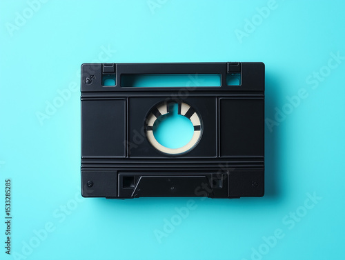 Obraz premium Black Cassette Tape on Teal Background Flat Lay Still Life