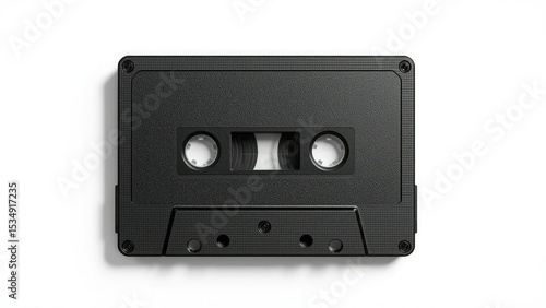 Obraz premium Black cassette tape on white background vintage music technology