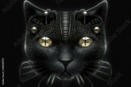 © Soulmate, Naklejka premium Black cat face fantasy created with Generative AI