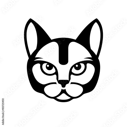© Sergei Sizkov, Obraz premium Black Cat Face Icon on White Background. Vector