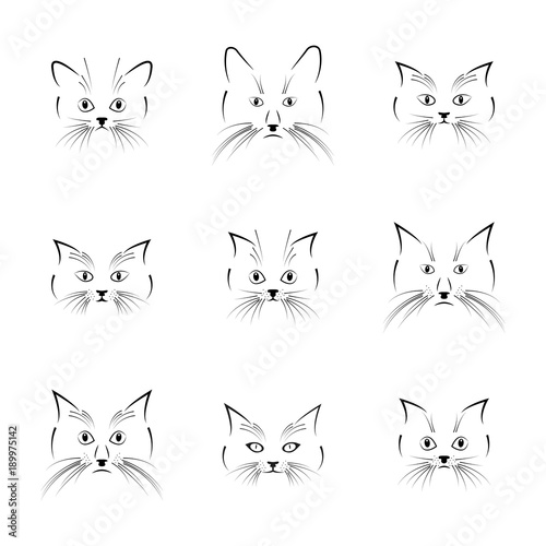 © kup1984, Fototapeta premium Black cat face, vector illustration.