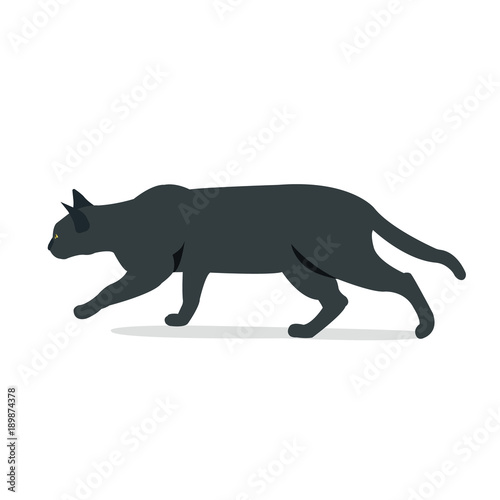 © vvadyab, Fototapeta premium Black cat hunting with isolated white background vector illustration.Black cat in front of a white background