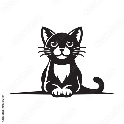 © Motiur, Obraz premium Black Cat Silhouette Icon White Background