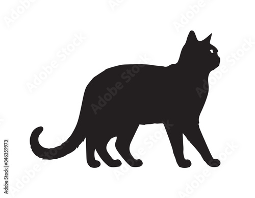 © Jomir, Obraz premium Black Cat Silhouette on White Background.