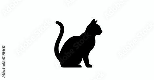 © Irina, Obraz premium Black cat silhouette simple minimalist with graphic style sitting profile against white background