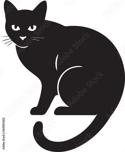 Naklejka premium Black cat silhouette vector illustration of a cute sitting domestic feline