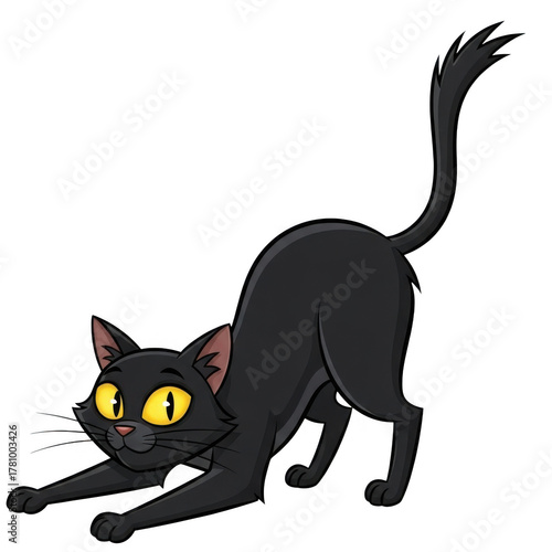 © Fouzia's Stock, Obraz premium Black cat stretching isolated on transparent background