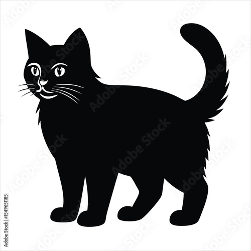 © vector icon, Obraz premium Black cat vector silhouettes white background , ai generator