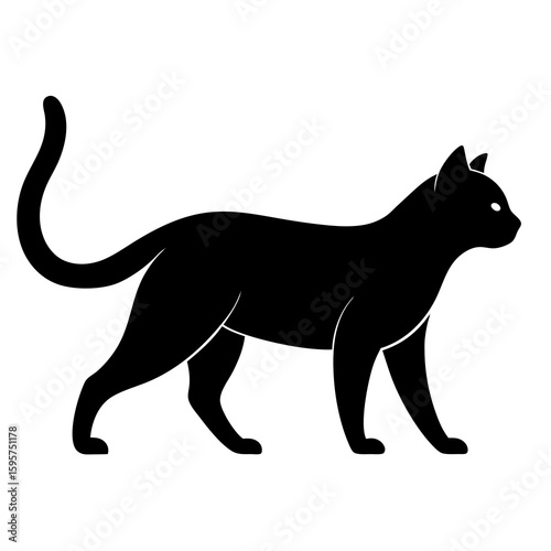 © Jobeda, Fototapeta premium Black cat walking silhouette animal