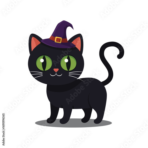 © MutakMera, Obraz premium Black cat with witch hat with transparent background