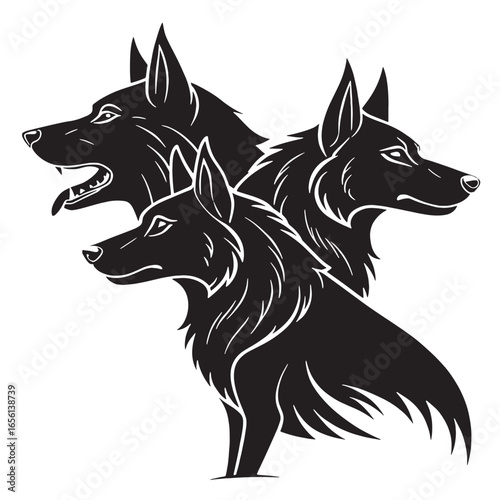 Naklejka premium black cerberus Silhouette Vector, High Quality Illustration on White Background