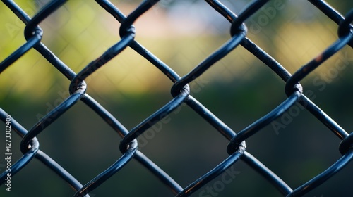 © Murda, Fototapeta premium Black chain link fence against blurry background.