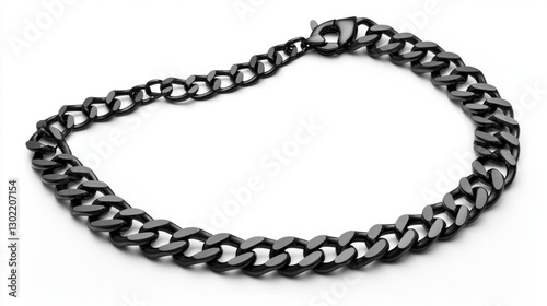 © Napasnan, Obraz premium Black Chain Necklace with Shiny Links on White Background