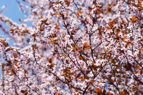 © nahhan, Fototapeta premium Black Cherry Plum branches with flowers