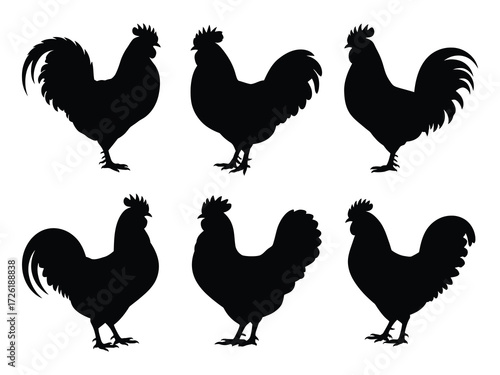 © CLOCK TIME, Fototapeta premium Black chicken set vector illustration with detailed farm animal silhouettes for creative design projects