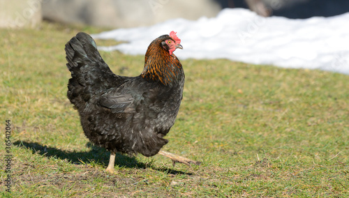 © John, Naklejka premium Black chicken walks on the grass