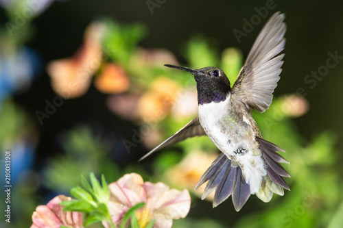© rck, Fototapeta premium Black-Chinned Hummingbird Searching for Nectar Among the Orange Flowers