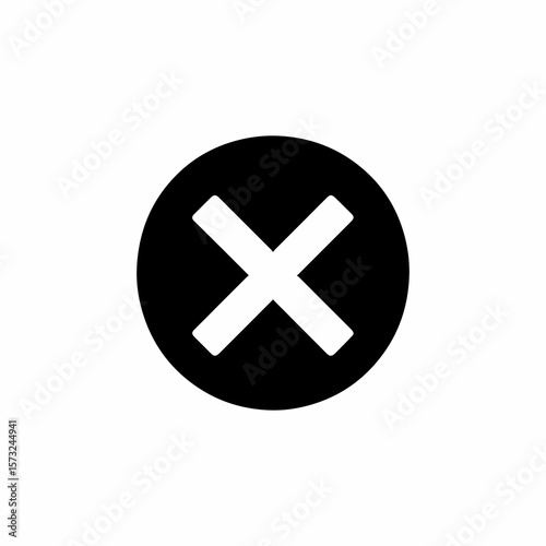 Fototapeta premium Black circle with a white cross symbol representing cancellation or error
