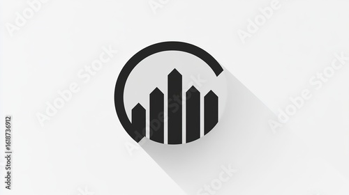 Obraz premium Black Circular Icon with Bar Chart Inside and Long Shadow
