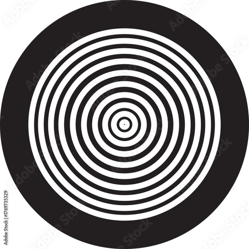 © Sattar, Obraz premium Black circular spiral abstract shape optical illusion art collection, geometric concentric circle group, hypnotic vortex round pattern, minimal flat vector design element bundle