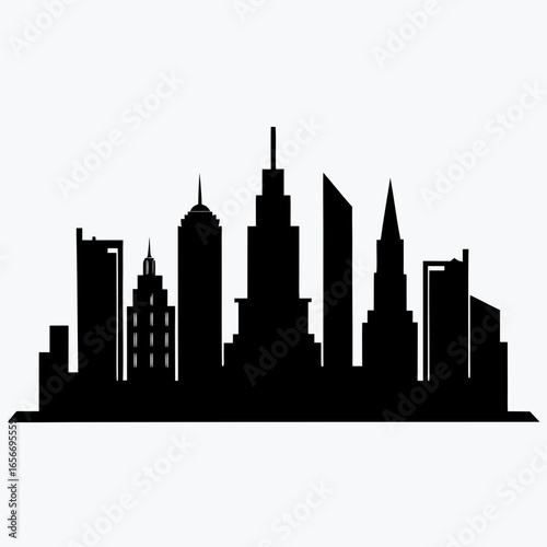 Fototapeta premium Black city skyline silhouette modern buildings vector