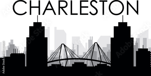 Obraz premium Black cityscape skyline panorama with gray misty city buildings background of CHARLESTON, UNITED STATES
