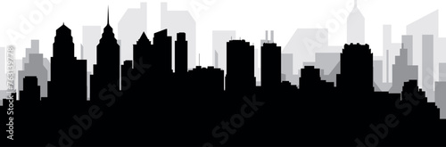 © Sanja, Naklejka premium Black cityscape skyline panorama with gray misty city buildings background of PHILADELPHIA, UNITED STATES