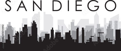 © Sanja, Fototapeta premium Black cityscape skyline panorama with gray misty city buildings background of SAN DIEGO, UNITED STATES