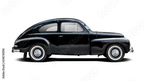 Fototapeta premium Black classic Swedish car isolated on white
