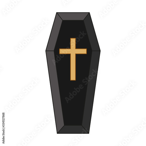 Obraz premium Black classical expensive coffin with a cross a wooden casket. Vector...