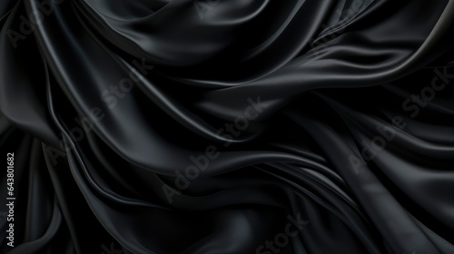 © Voilla, Obraz premium Black cloth waves background texture.