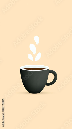 © istorsvetlana, Fototapeta premium Black coffee cup with splash on light peach background