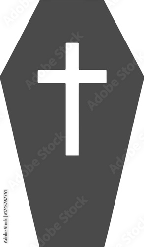 Obraz premium Black coffin with a white cross simple design on transparent background...