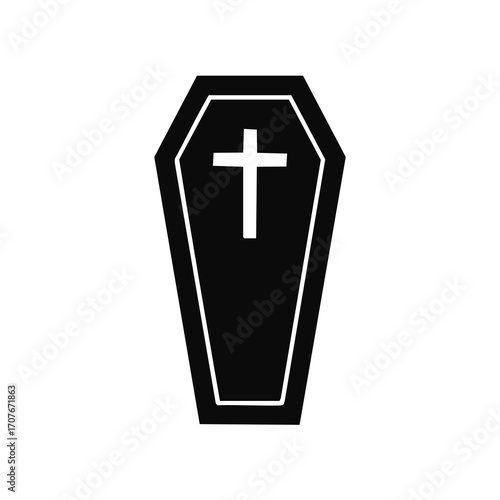 © Sticker, Obraz premium Black Coffin With White Cross Icon death funeral