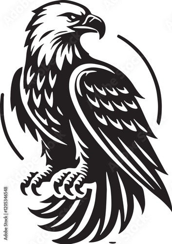 Obraz premium Black Color Bald Eagle Silhouette Vector Illustration, Solid White...