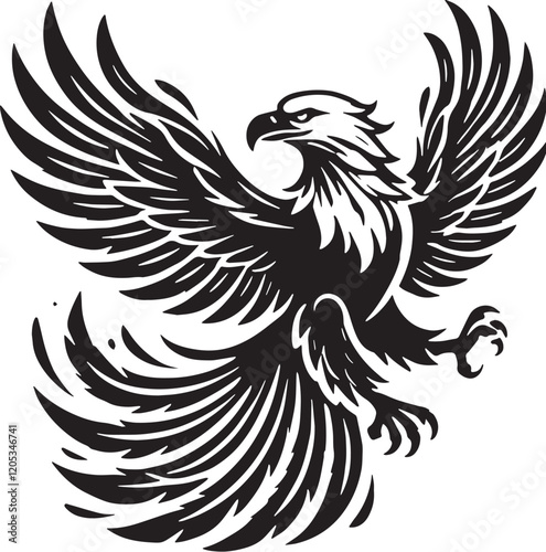 Obraz premium Black Color Bald Eagle Silhouette Vector Illustration, Solid White...
