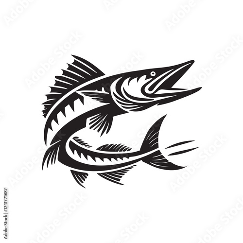 Obraz premium Black Color Barracuda silhouette design Vector Illustration, Solid White...