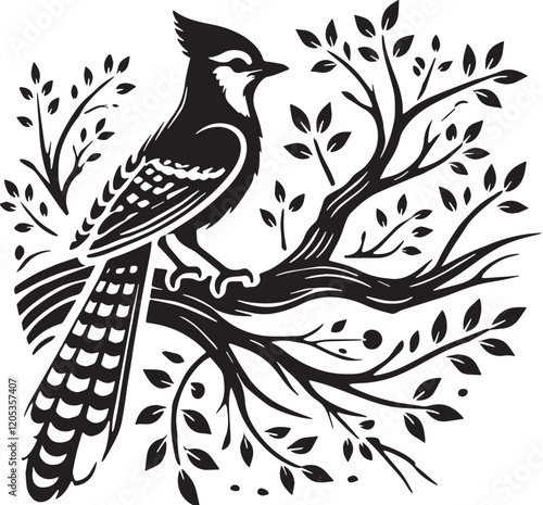 Naklejka premium Black Color Blue Jay Silhouette Vector Illustration, Solid White Background....