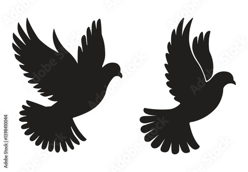 © Ashraful, Obraz premium Black color dove set peace vector silhouettes design with white background.